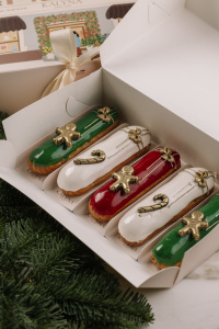 Набір з 6 тістечок із заварним кремом в новорічному оформленні в подарунковому пакуванні.