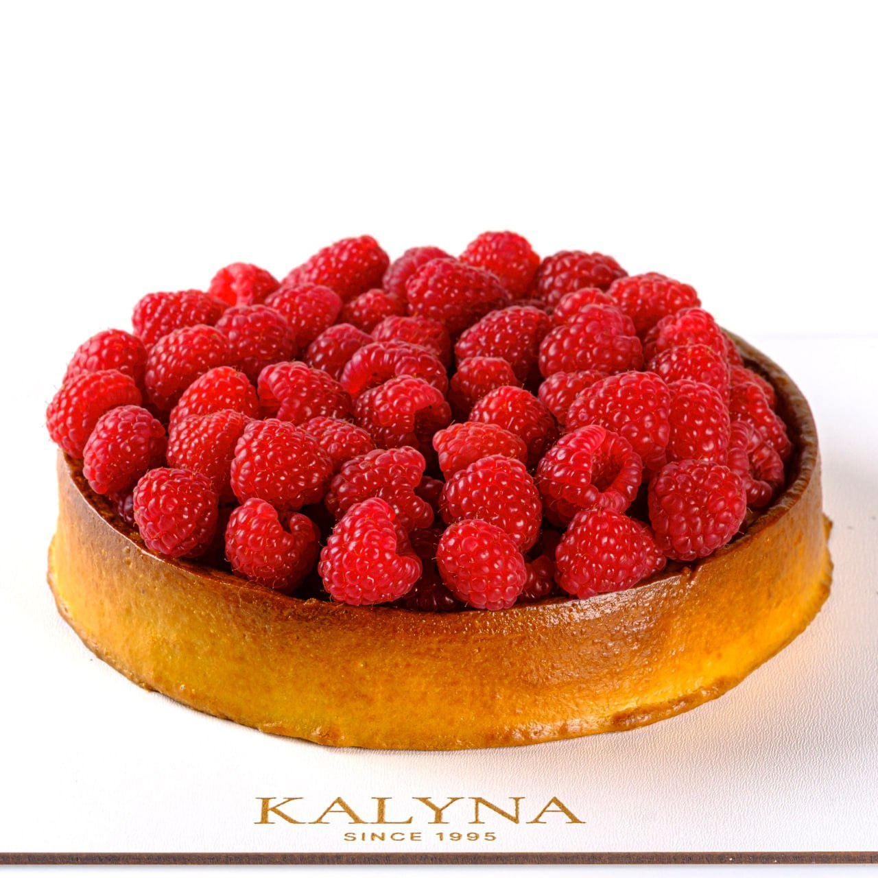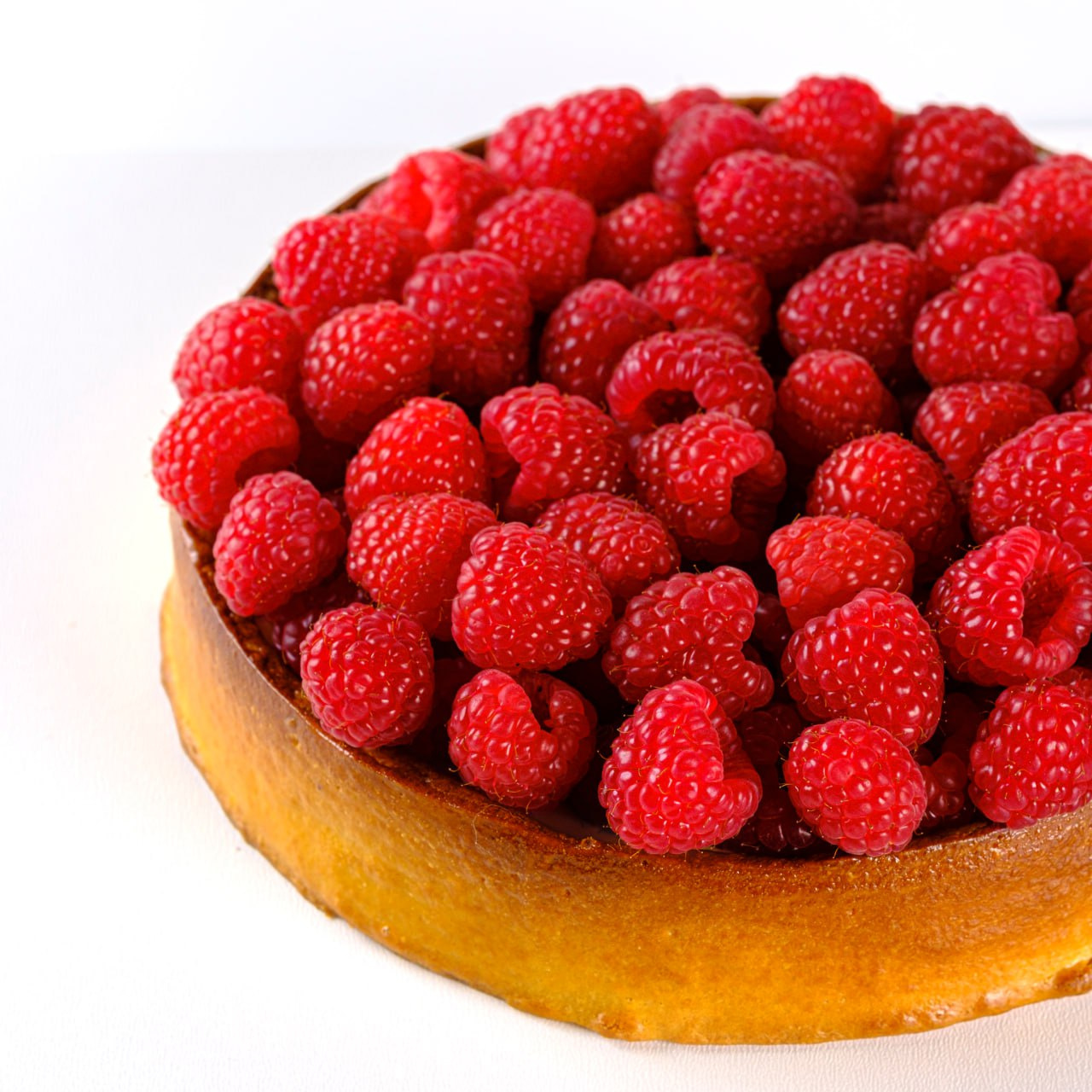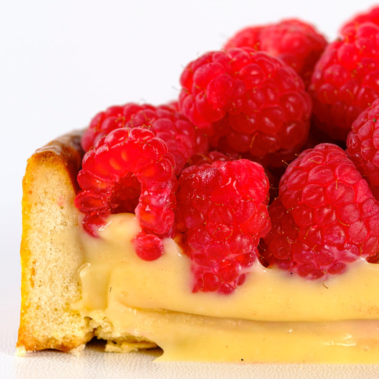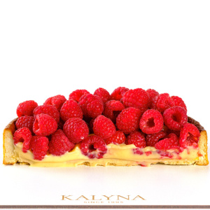 Пісочний кошик із заварним кремом в середині, покритий свіжою малиною