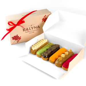 Детальніше: Борошно пшеничне, борошно мигдальне, яйця,цукор, молоко, вершки 30%, масло вершкове 82%, глюкоза, шоколад білий Callebaut 30%, паста ванілі Бурбон, фісташкова паста 100%, шоколад чорний, малина см, манго см, маракуйя см, фісташка