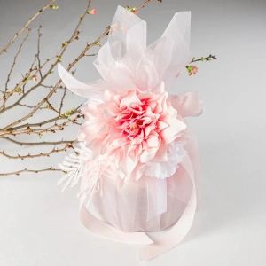Каждый кулич оформляется вручную в декоративный текстиль с весенними цветочными элементами и лентами.
