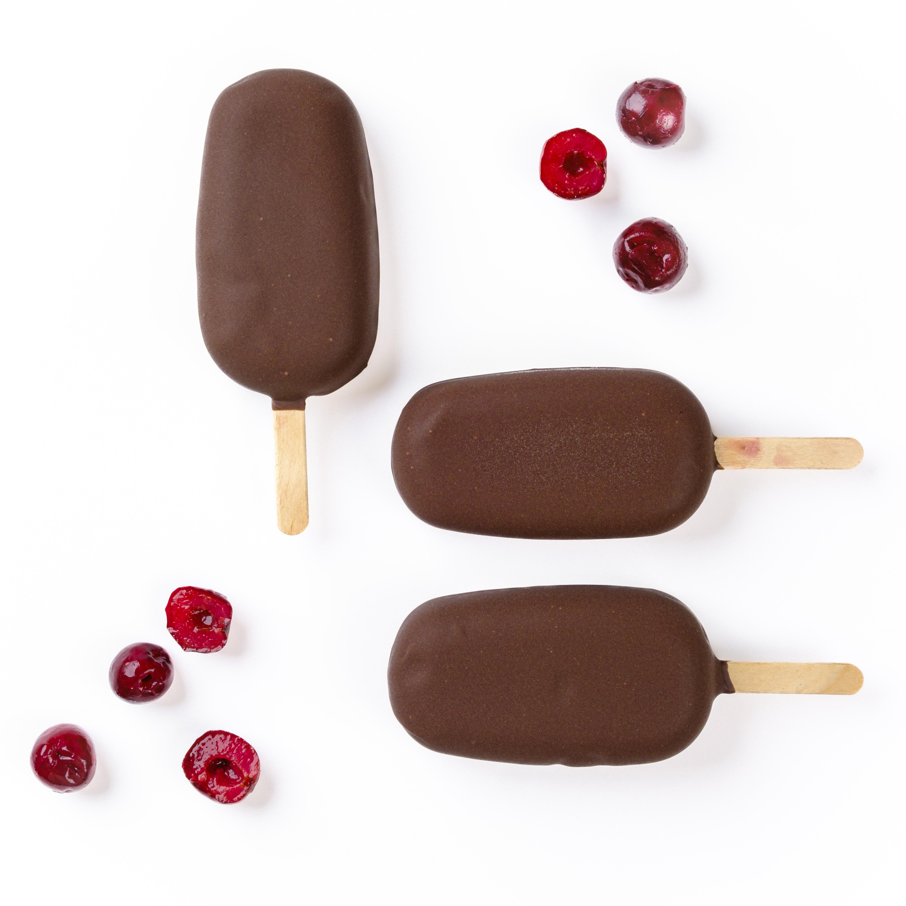 Мороженое со вкусом вишни Амарена на палочке в черном шоколаде, в форме эскимо. Фирменное натуральное мороженое. Бельгийский шоколад Callebaut.