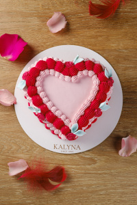 Фирменный торт «Золушка» в тематическом оформлении ко Дню влюбленных.