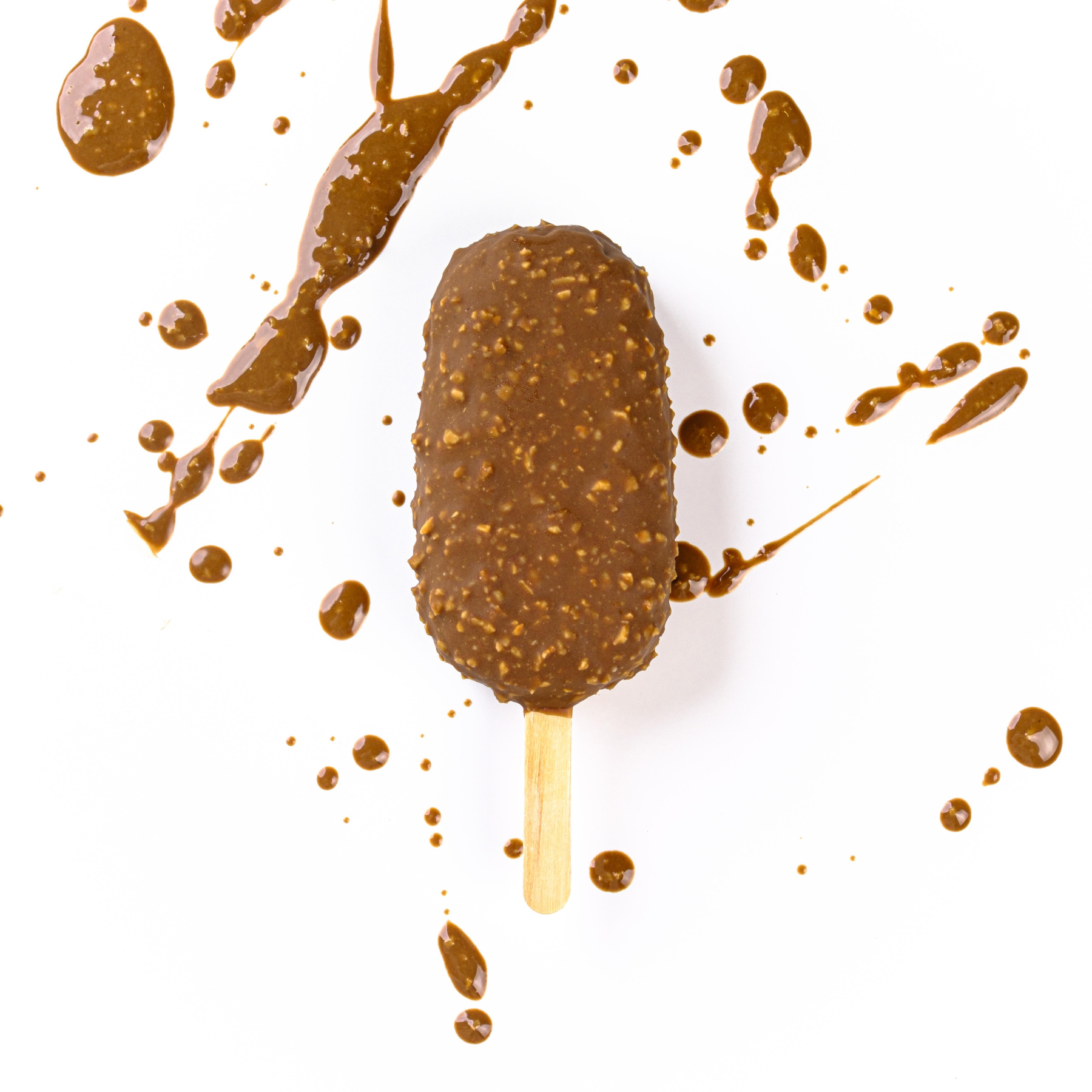 Сливочное мороженое на палочке в глазури гурме из молочного шоколада и измельченного фундука в форме эскимо. Фирменное натуральное мороженое, изготовленное по семейному итальянскому рецепту. Бельгийский шоколад Callebaut.