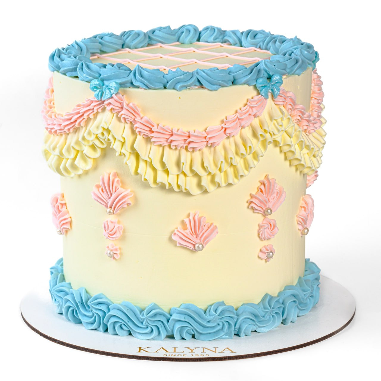 Торт у стилі ламбет прикрашений кремовими завитками та рюшами.