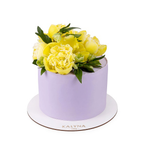 Торт під крем-чізом лавандового кольору з живими квітами.