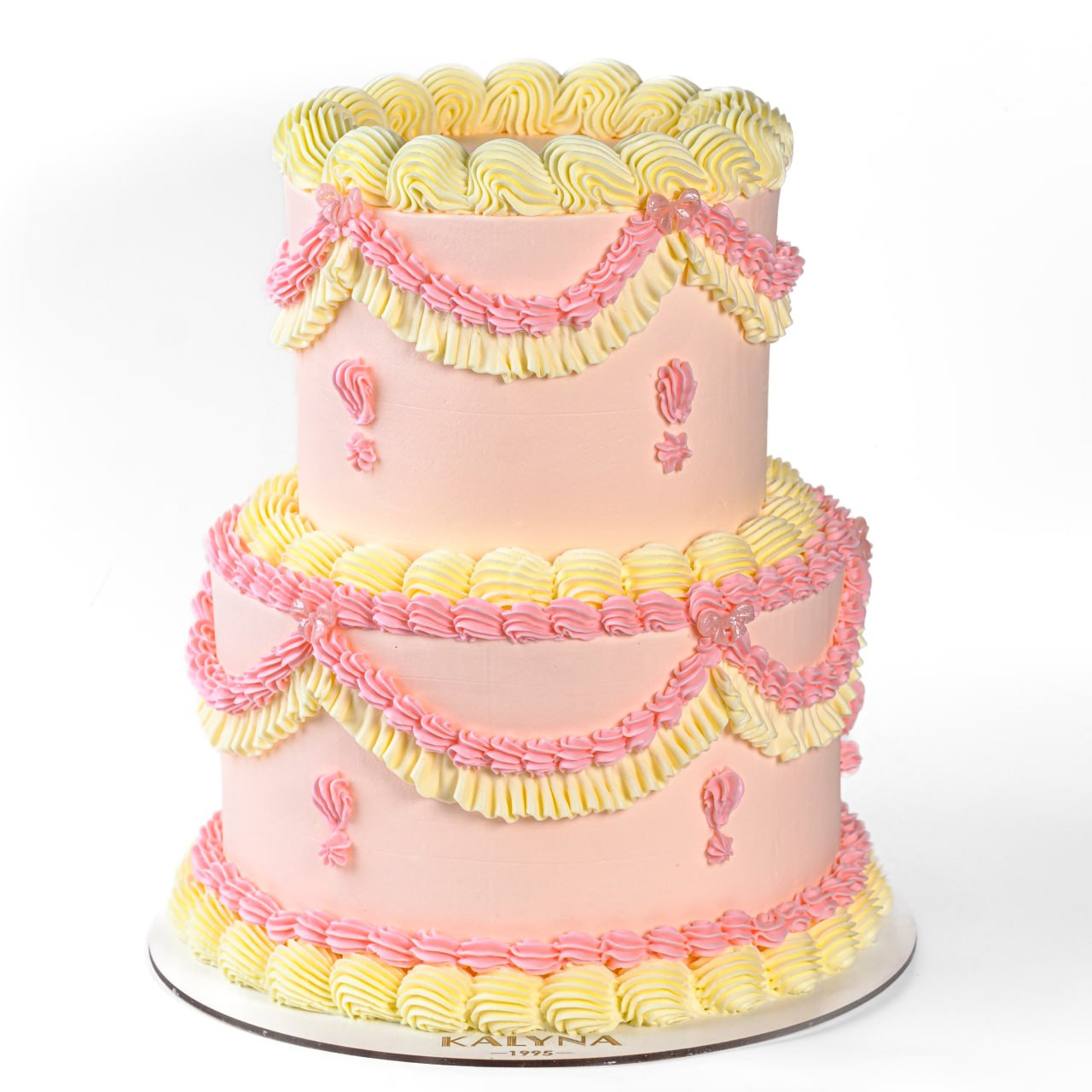 Торт у стилі ламбет прикрашений кремовими завитками та рюшами.