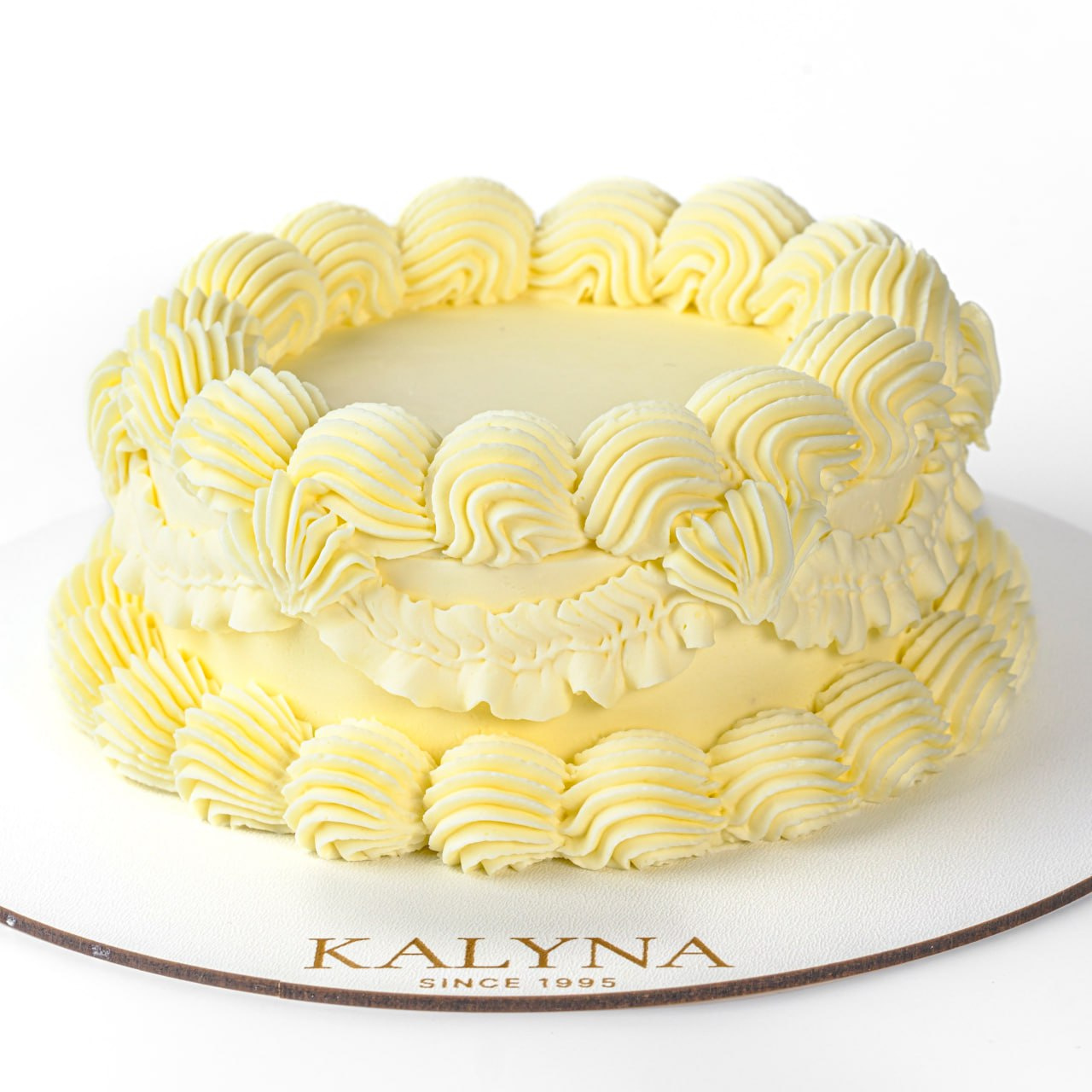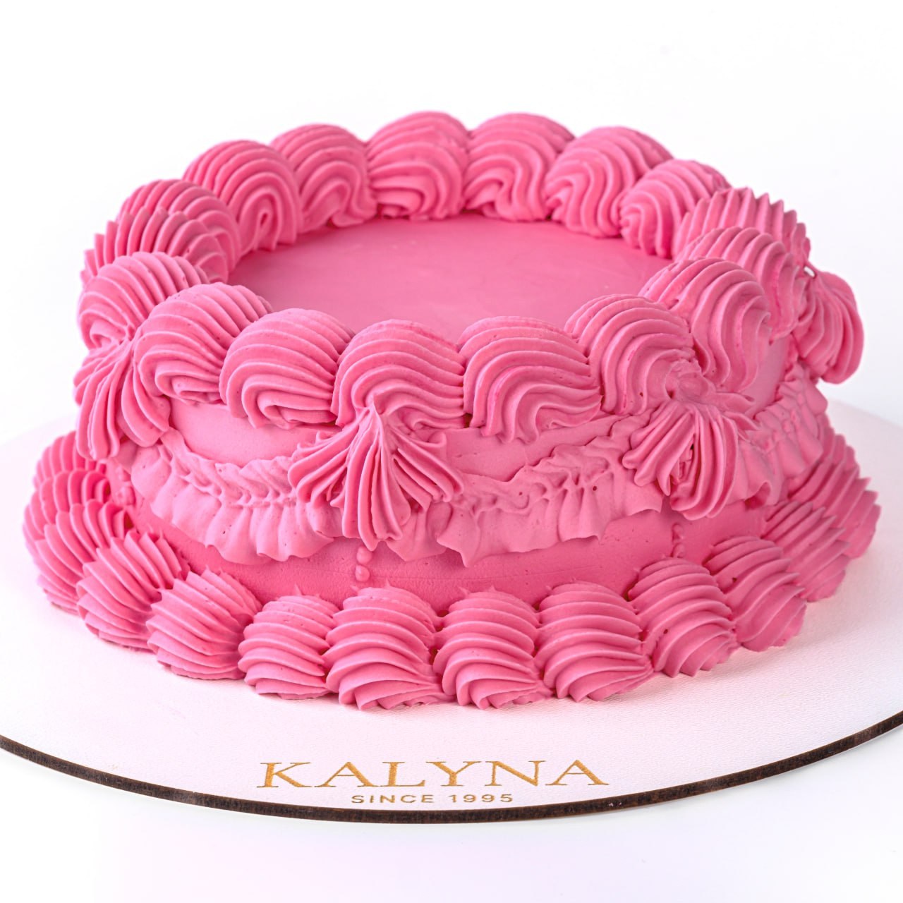 Торт у стилі ламбет прикрашений кремовими завитками та рюшами. Різних кольорів