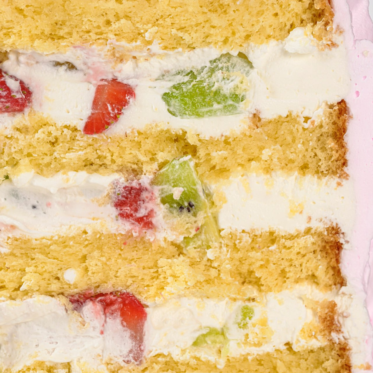 Детальніше: Яйця, цукор, борошно безглютенове, вершки безлактозні, полуниця свіжа, ківі, персик консервований, желатин